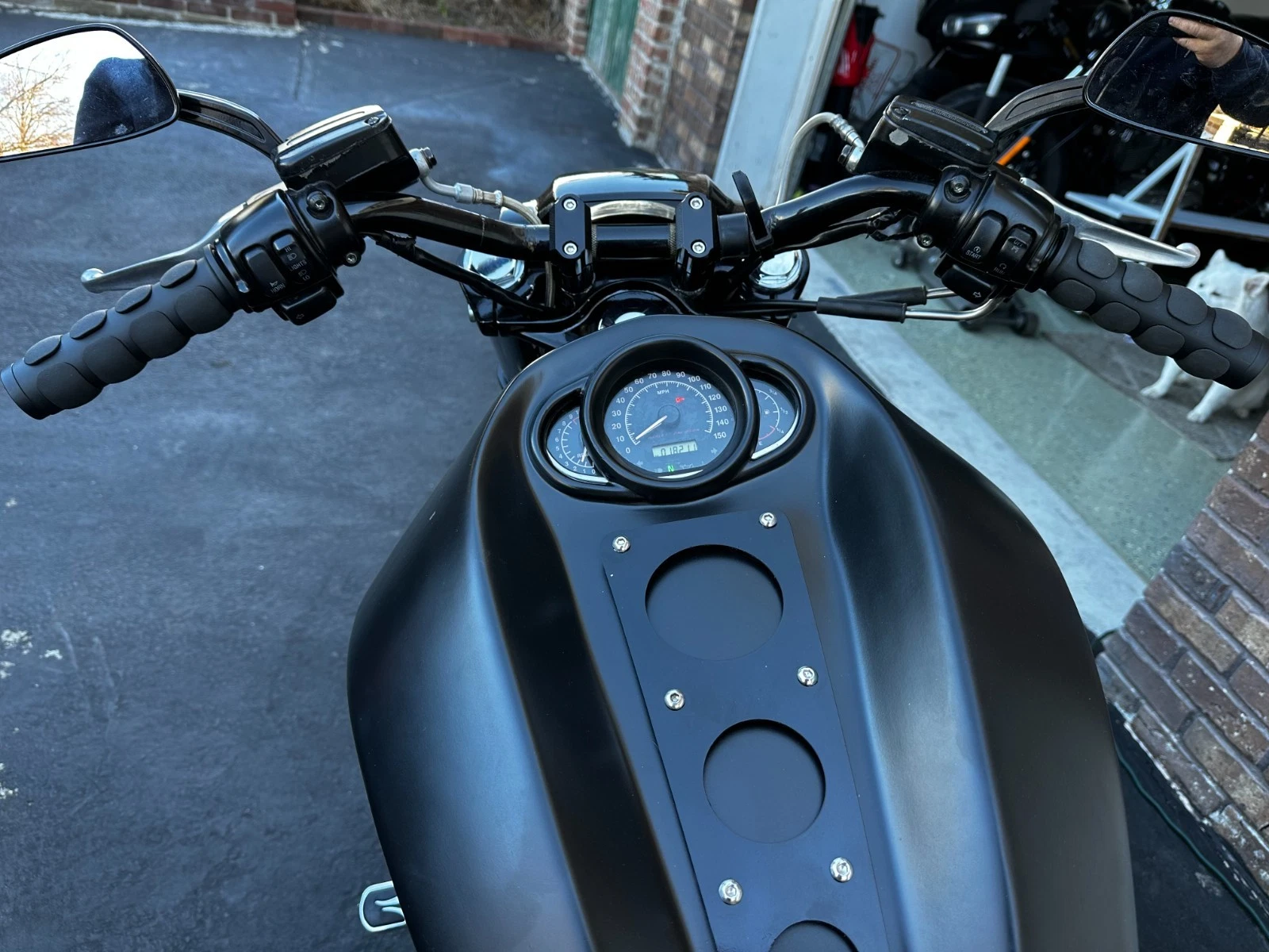8. Air filter cover: Requires trimming of stack and speed bolts. Muscle models will need to trim the left side of the molded half-circle bezel to accommodate the air filter cover.